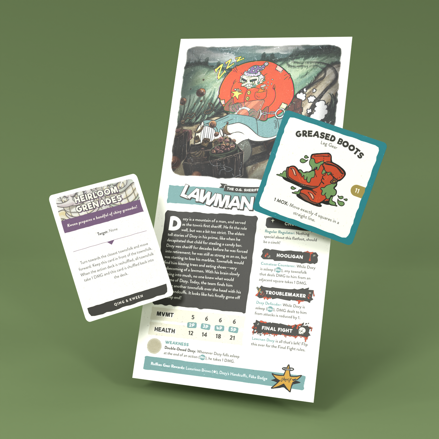 This is for folks who have the First Edition of Townsfolk Tussle (2021), to upgrade your components to the Second edition (2024). A collection of cards and cardboard assets to fix minor errata and balancing, and increase clarity!